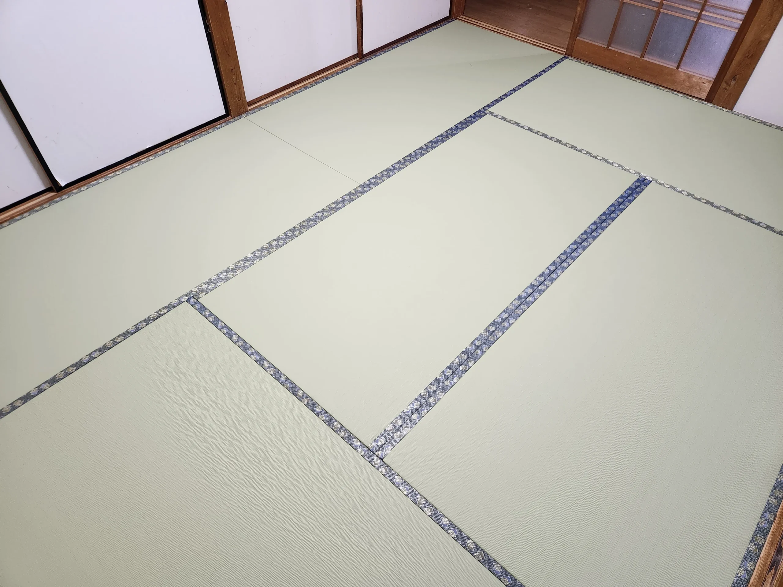 また、グリーン色は和室らしい落ち着きを残しつつ、明るすぎず暗すぎないため、お部屋全体がすっきり見えます。さらに今回は、畳縁に白馬No.5を合わせたことで、和の雰囲気をきちんと残しながら、上品にまとまった印象になりました。畳そのものは機能性を意識しつつ、見た目は和室として違和感なく仕上げる。このバランスが今回のポイントです。