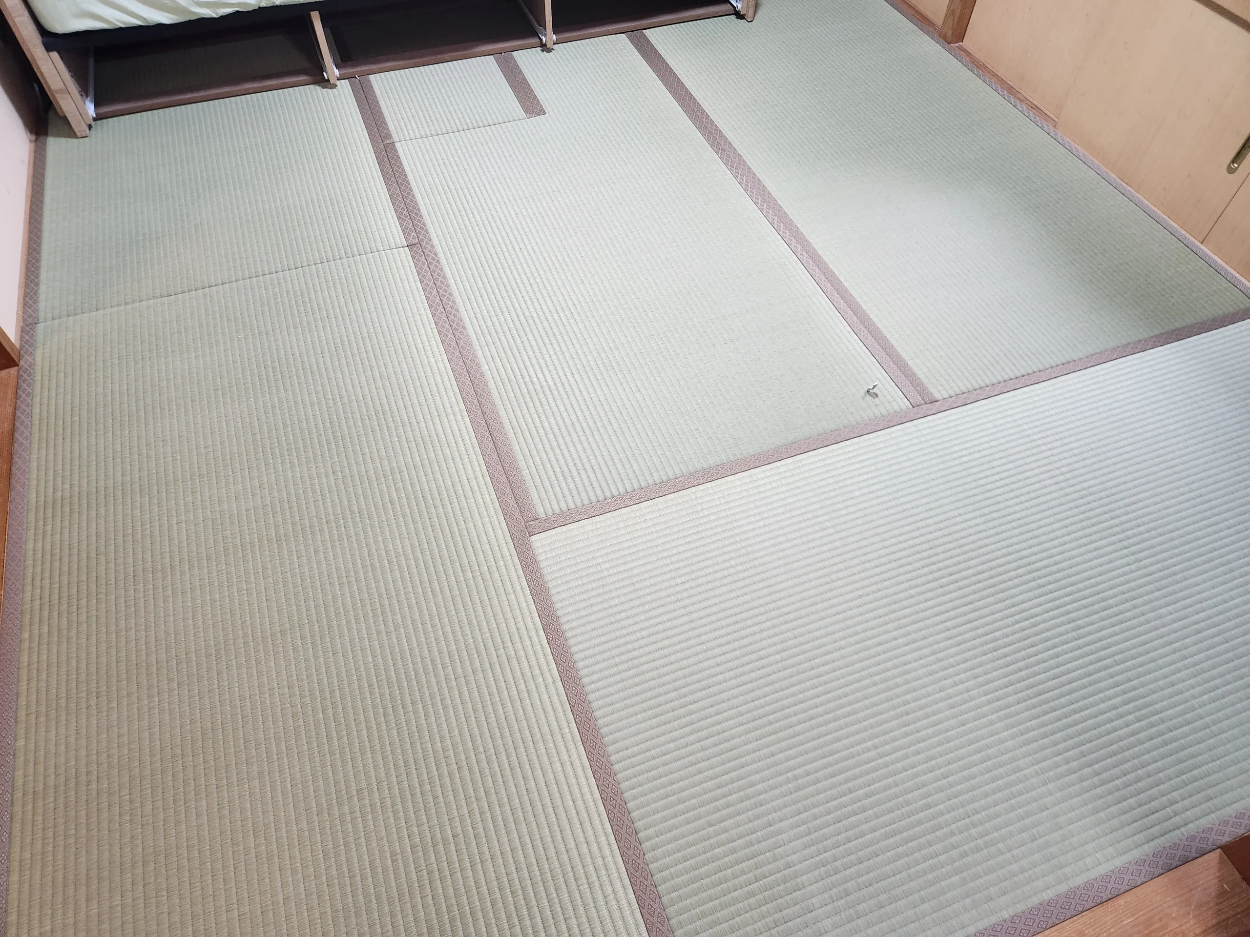 しかも今回の畳表は、肥後物産の推奨品(熊本県産・麻綿W)。い草の厚み・弾力がしっかりしてるので、床の柔らかさと合わさると、踏んだ瞬間の感じがかなり良い。